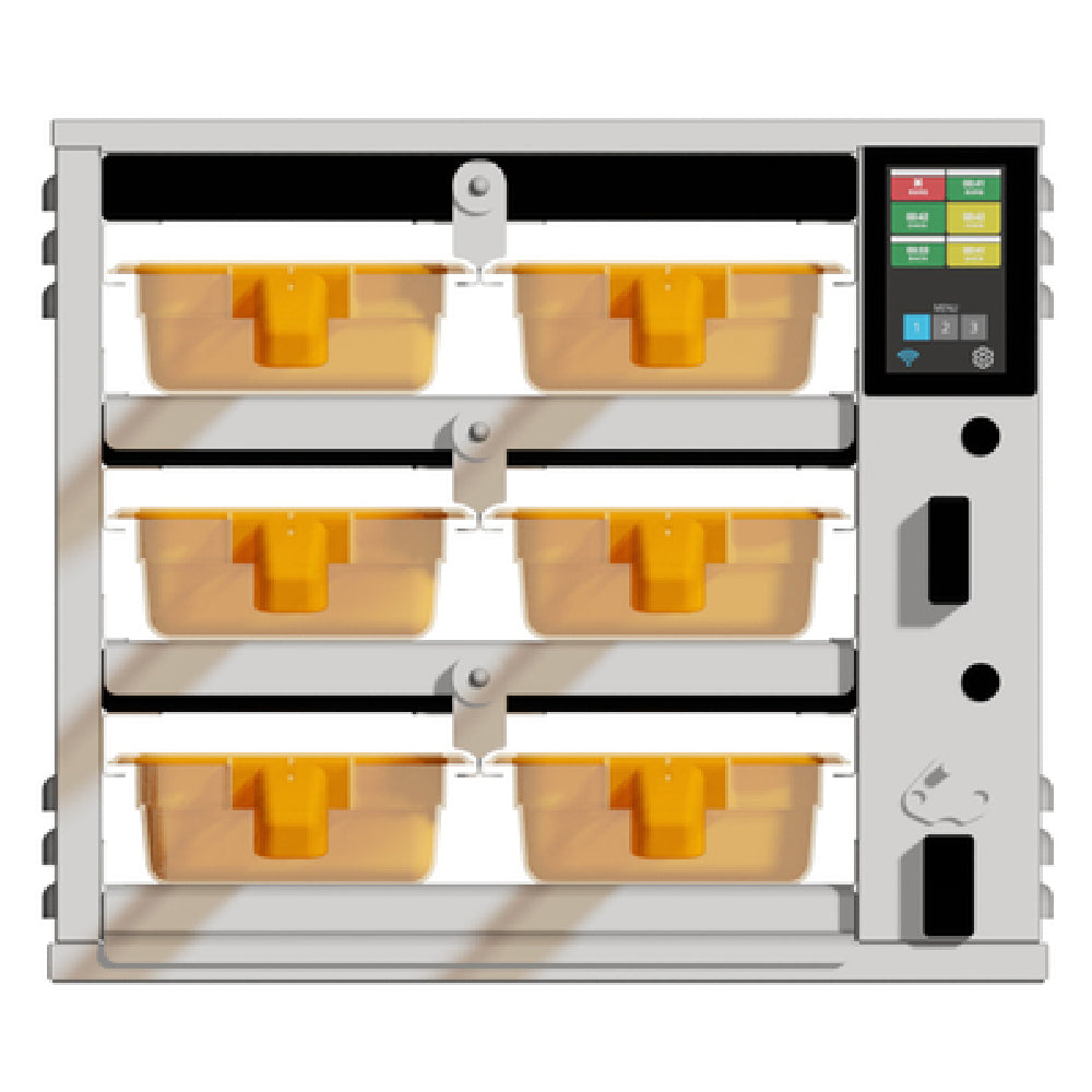 The Duke RFHU-32_208-240/60/1 ReadyFlex™ Hot Holding Cabinet is a versatile, high-performance solution engineered for commercial kitchens requiring efficient food storage. This hot holding cabinet features a three-compartment-high and two-compartment-wide design, with each compartment measuring 19 inches in width, 14-1/8 inches in depth, and 16-3/5 inches in height, accommodating 2.5-inch-deep pans, although pans are not included. The cabinet's full-color touchscreen control enhances user interaction, allowing precise temperature management. Its independent top and bottom zoned heat system provides customizable heating environments per compartment, optimizing food quality and safety. The cabinet includes individual and interchangeable pan lids, with three solid and three vented lids to suit different storage needs. The audible alarm ensures timely alerts for system adjustments. Constructed with durable stainless steel, this cabinet meets CE, cULus, and UL EPH Classified standards, ensuring quality and safety. The Duke RFHU-32 is ideal for various segments of the foodservice industry, offering reliable, customizable hot holding solutions for caterers, restaurants, and food production facilities. Its innovative design and robust build make it a crucial asset for maintaining food at optimal temperatures.