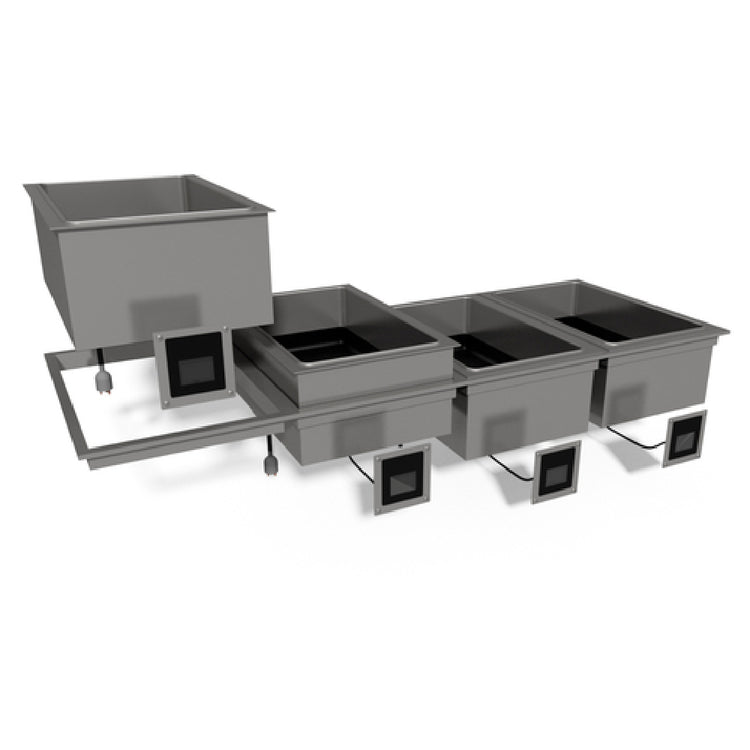 - Five 12" x 20" hot food wells for large capacity