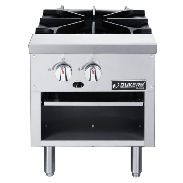 Dukers Appliance Co., USA Ltd., DCSPA1, Stock Pot Range, gas, 18"W x 24-1/4"D x 22-3/4"H, (1) heavy duty cast iron 3-ring burner, (2) continuous pilots, (2) manual controls for independent inner/outer rings, full length drip pan, stainless steel sides, front valve cover & legs, 80,000 BTU, cCSAus, CSA-Sanitation (Configured for Natural Gas, LP Conversion Kit Included)