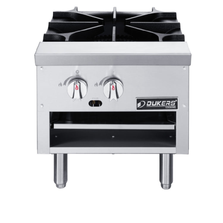 The Dukers Appliance Co. USA Ltd. DCSPB1 Stock Pot Range Gas is engineered for robustness and efficiency, featuring a single heavy-duty cast iron 3-ring burner. With an impressive output of 80,000 BTU, this range is designed to handle the high demands of commercial kitchens. It is equipped with two continuous pilots and two manual controls, allowing for independent operation of the inner and outer rings, providing flexibility in cooking various dishes. The full-length drip pan ensures easy cleaning and maintenance, making it a practical choice for busy environments. Constructed with stainless steel sides, front valve cover, and legs, this stock pot range offers durability and a sleek aesthetic that fits seamlessly into any kitchen design. Configured for natural gas, it also includes an LP conversion kit, making it versatile for different fuel requirements. Certified by cCSAus and CSA-Sanitation, the DCSPB1 ensures compliance with safety and sanitation standards. This product is ideal for restaurants, catering services, and other food service operations that require powerful, reliable cooking equipment to meet diverse culinary needs efficiently.