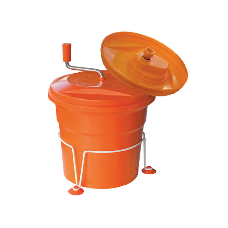 The Dynamic E004.B SD92SC Salad Spinner Manual 5 Gallon (20 Liter) Capacity is an essential tool for kitchens seeking efficiency and precision in salad preparation. With a substantial capacity of 5 gallons (20 liters), this salad spinner is adept at drying up to 8 heads of lettuce in one go, making it suitable for both small and large-scale food service operations. Its dimensions - 17 inches in diameter and 21 inches in height - provide a compact yet spacious design, optimizing space while delivering excellent performance. The sealed cover ensures that contents remain contained during operation, minimizing mess and maintaining hygiene standards. Certified by CE and ETL-Sanitation, the spinner adheres to international safety and sanitation benchmarks, making it an ideal choice for professional kitchens committed to quality and compliance. Equipped with a stabilizing base (SSB1), the Dynamic E004.B SD92SC Salad Spinner remains steady during use, enhancing user safety and product longevity. This salad spinner is a valuable asset for restaurants, catering services, and food preparation units that prioritize efficiency, hygiene, and quality in their operations.
