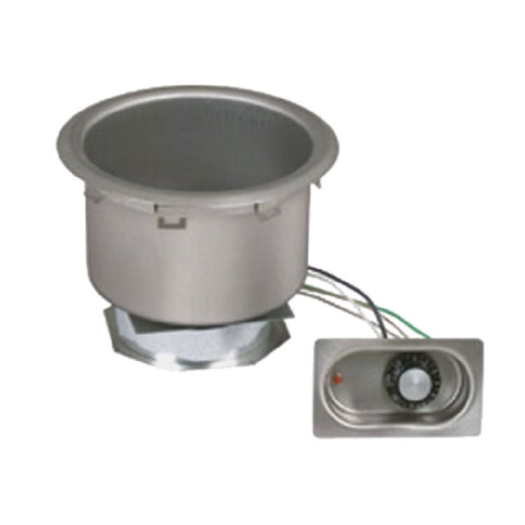 The Eagle 11QDI-208D Food Warmer With Drain Drop-in Electric is a versatile solution engineered for efficient food service operations. Designed for both wet and dry operation, this unit features an 11-quart round pan, offering substantial capacity for diverse culinary needs. Its infinite control mechanism enables precise temperature adjustments, ensuring food is maintained at optimal conditions. Crafted from durable stainless steel, the food warmer boasts a robust construction that withstands rigorous daily use, although it is uninsulated. Operating on a 208v/60/1-phase electrical system, it efficiently utilizes 500 watts of power and draws 2.4 amps, making it suitable for various commercial environments. The inclusion of a drain facilitates easy maintenance and cleaning, enhancing its practicality in high-demand settings. Certified by the NSF, this product meets stringent public health and safety standards, making it a reliable choice for foodservice professionals. Ideal for restaurants, catering services, and buffet lines, the Eagle 11QDI-208D Food Warmer stands out for its combination of capacity, control, and compliance, supporting seamless operations and high standards of food safety. Its drop-in design allows for easy integration into any food preparation area, maximizing space efficiency and operational convenience.