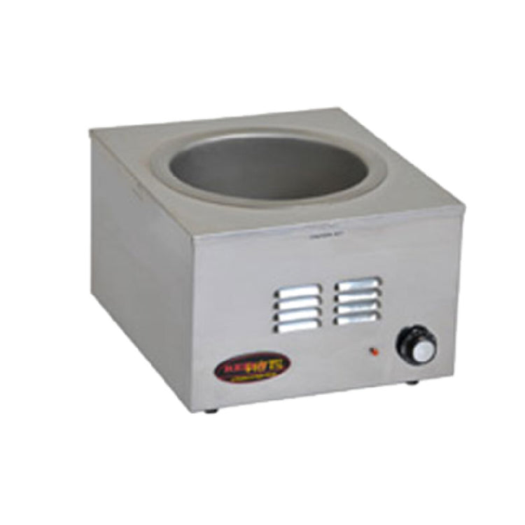 The Eagle 11QFW-208 RedHots® Food Warmer Countertop Electric is designed for optimal performance in commercial food service environments. This unit includes an 11-quart round pan capacity, offering substantial space for keeping various food items at the ideal serving temperature. Its versatile operation accommodates both wet and dry heating methods, providing flexibility to fit different warming needs. Equipped with infinite control, it allows precise temperature adjustments to suit specific requirements. Constructed from durable stainless steel, the food warmer ensures long-lasting use and easy cleaning, maintaining hygiene standards. It operates on a 208v/60/1-ph electrical system, consuming 495 watts with an amperage of 2.4 amps, making it an efficient choice for energy-conscious operations. The Eagle 11QFW-208 is NSF certified, signifying its adherence to strict safety and quality standards. This product is a valuable addition to catering services, buffets, and restaurant kitchens, where reliable and efficient food warming solutions are essential. Its combination of advanced features and robust construction makes the Eagle 11QFW-208 a dependable tool for professionals seeking superior food warming capabilities.