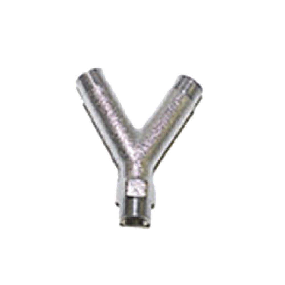 The Eagle 342938 Non-Temperature Adjustment Valve is a specialized component engineered exclusively for electronic hand sinks. This "Y" shaped, single-piece component is crafted from chrome-plated brass, ensuring durability and resistance to corrosion in demanding environments. Its design includes a male connection with threads measuring 9/16-24 UNEF, guaranteeing a secure and precise fit. The absence of a temperature adjustment capability simplifies installation and maintenance, making it ideal for applications where fixed temperature control is desired or mandated. The Eagle 342938 valve stands out in markets that require reliable and robust plumbing solutions, particularly in commercial and institutional settings such as hospitals, schools, and restaurants, where electronic hand sinks are prevalent. The integration of this valve into electronic hand sinks ensures seamless operation without the need for manual temperature adjustments, supporting high standards of hygiene and efficiency. Its construction from chrome-plated brass not only provides an aesthetically pleasing finish but also offers longevity, reducing long-term maintenance costs. The technical precision of the 9/16-24 UNEF threads ensures compatibility with a wide range of electronic hand sinks, making it a versatile choice for professionals in the plumbing and construction industry.