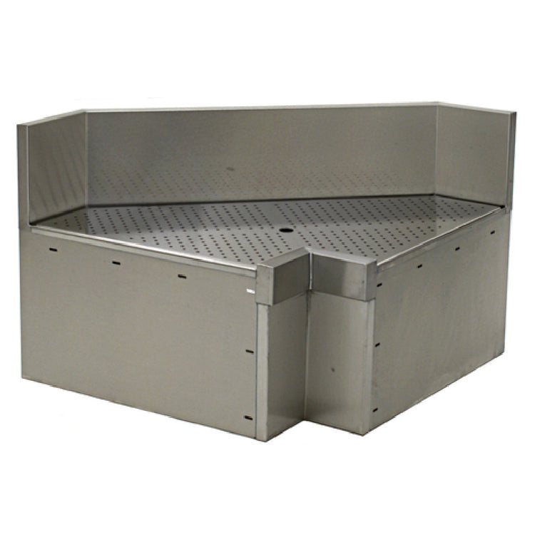 The Eagle 45ICWB-19 Spec-Bar® Underbar Corner Workboard is a specialized unit designed to fit seamlessly into underbar configurations with a precise 90° inside angle. Engineered to accommodate 19-inch deep underbar equipment, this workboard features a drainboard top equipped with a perforated stainless steel insert, ensuring efficient liquid management. The design includes clipped corners on both the front and rear, enhancing adaptability within tight bar spaces. An 8-inch high backsplash provides added protection against spills, while the 1-1/2 inch I.P.S. drain ensures effective drainage. Crafted from 304 stainless steel, the workboard promises durability and resistance to corrosion, making it a reliable choice for busy establishments. Notably, this unit is designed without legs, allowing it to mount directly to adjacent underbar equipment using the included mounting clips, optimizing space usage. Certified by NSF, this product aligns with health and safety standards required in professional environments. Ideal for bars, restaurants, and hospitality venues, the Eagle 45ICWB-19 Spec-Bar® Underbar Corner Workboard offers a robust solution for establishing efficient and hygienic work areas, meeting the diverse needs of industry professionals seeking reliable and space-efficient bar configurations.