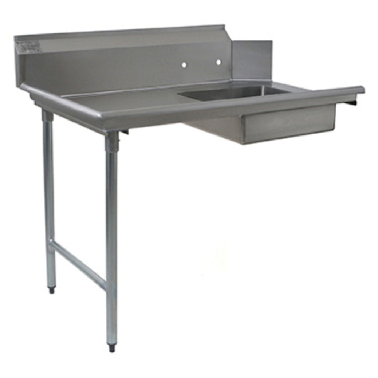 The Eagle BPSDT-96L-16/3 BlendPort® Soiled Dishtable Straight Design 96"W is a specialized piece of equipment designed for efficient handling of soiled dishes in commercial kitchens. Crafted with a straight design spanning a width of 96 inches, it supports left-to-right operation, facilitating a streamlined workflow. The work surface is constructed from high-grade 16/300 stainless steel, ensuring durability and resistance to corrosion. This dishtable features a sizable 20" x 20" x 5" deep sink, complete with a 1-1/2" basket drain for effective water management. Supported by robust stainless steel legs and crossbracing, this unit offers remarkable stability even under heavy loads. It is NSF certified, reflecting its adherence to stringent public health and safety standards. The Eagle BPSDT-96L-16/3 is ideal for various sectors within the foodservice industry, particularly environments that demand high standards of hygiene and efficiency, such as restaurants, hotels, and catering services. Its sturdy construction and thoughtful design make it a reliable choice for operations requiring consistent performance in dish handling and cleaning processes.
