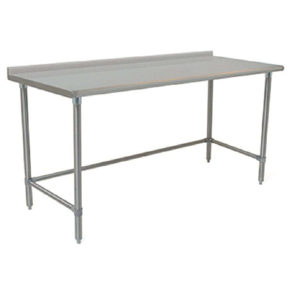 The Eagle BPT-2448STB-UT BlendPort® Budget Series Work Table is a versatile addition to any commercial kitchen or workspace, measuring 48 inches in width and 24 inches in depth. Its top is crafted from 430 stainless steel, known for its durability and corrosion resistance, making it an excellent choice for rigorous environments. The table features a rolled front edge and a 1-1/2-inch rear upturn to prevent items from falling off and ensure easy cleaning. The square turned down ends add structural integrity, while the reinforced top further enhances its robustness. Supporting the table are four 1-5/8 inch diameter stainless steel legs, providing stable and reliable support. The Uni-Lok® gussets offer additional reinforcement, ensuring longevity and strength under heavy-duty use. For foundational stability, the table is equipped with 1-inch adjustable stainless steel bullet feet, allowing for easy leveling on uneven surfaces. Additionally, the 1-1/4 inch diameter stainless steel tubular crossbracing base offers exceptional stability. This work table is NSF certified, indicating its compliance with public health standards, making it suitable for various industries such as food service, healthcare, and laboratories. Its practical design and solid construction make it a cost-effective solution for professionals seeking reliable work surfaces.