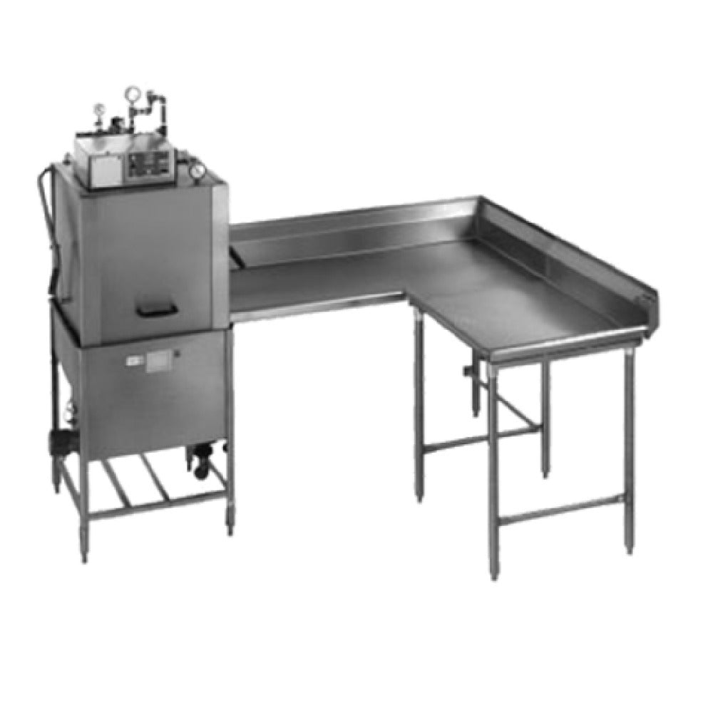 The Eagle CDTCR-96-16/4 Clean Dishtable Corner Design 96" Machine To Corner is an expertly crafted fixture designed for efficient commercial kitchen operations. This dishtable features a robust 16-gauge, 430 stainless steel top, ensuring durability and resistance to corrosion, making it suitable for heavy-duty use in food service environments. With a generous 30" working depth, this table provides ample space for handling and sorting dishes efficiently. Its corner design allows seamless integration within the kitchen layout, optimizing the workflow by connecting directly from the machine to the corner, and extending 60" from the corner to the end. The table stands at an overall height of 43-1/2", and its left-to-right operation facilitates a smooth process for right-handed users. The 8" high backsplash prevents spills and splashes from affecting surrounding areas, while the raised rolled edges on the front and side add to its safety and usability. Constructed with galvanized legs and crossbracing, the table boasts sturdy support and stability. The adjustable metal feet allow for customization according to floor level, ensuring perfect alignment and balance. NSF certification guarantees compliance with strict public health and safety standards. This dishtable is a crucial component for any commercial kitchen aiming for efficiency and hygiene.