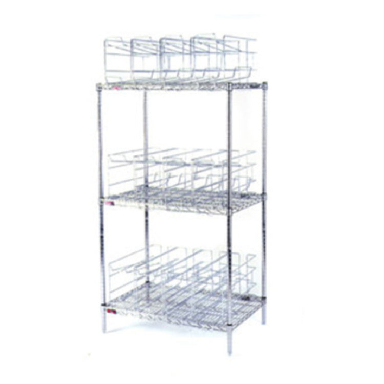 The Eagle CRC3-X Can Rack Storage System is a top-tier solution for organized and efficient storage, specifically engineered for high-demand environments. With its dimensions of 36 inches in width, 26-1/2 inches in depth, and 72-7/8 inches in height, this 3-tier system is built to accommodate up to 96 #10 cans, optimizing space without sacrificing accessibility. Each of its three wire shelves is equipped with robust can storage racks, ensuring that your inventory is securely held and easily reachable. The system is supported by four 63-inch high posts, providing stability and durability essential for heavy-duty use. Constructed from chrome-plated mild steel and heavy-gauge wire, the Eagle CRC3-X not only offers strength and durability but also a sleek, professional aesthetic suitable for various industrial settings. This product is NSF certified, signifying its compliance with rigorous health and safety standards, making it an excellent choice for food service applications, commercial kitchens, or any industry where streamlined storage solutions are critical. Its thoughtful construction and design cater to the unique needs of diverse market segments, ensuring that the Eagle CRC3-X Can Rack Storage System stands out as a reliable and practical storage fixture.