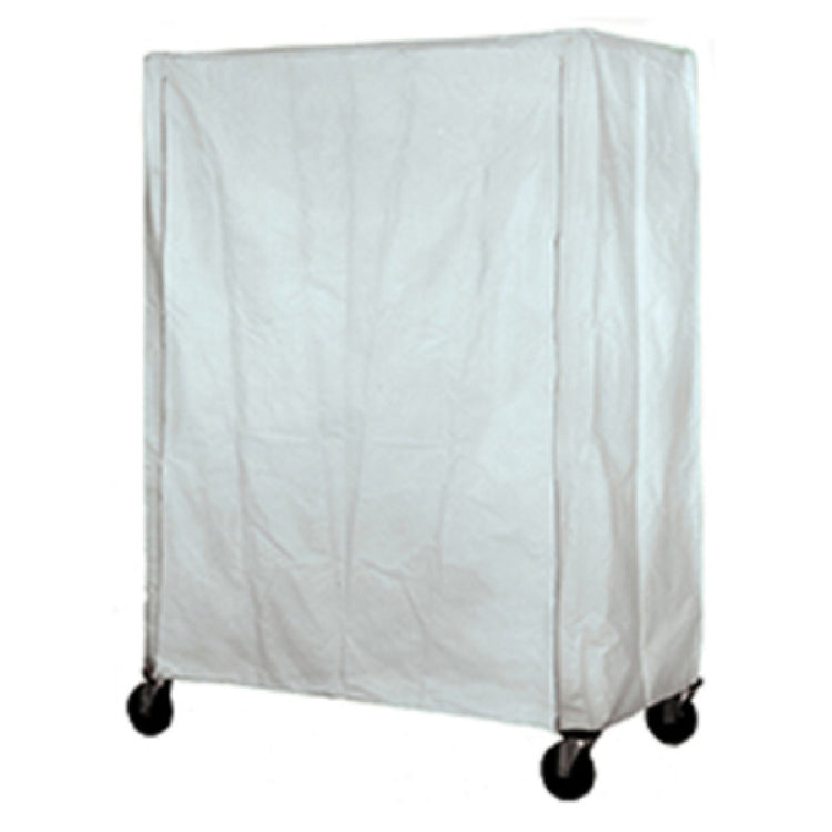 The Eagle CZC-74-2448 Cart Cover Coated With Zipper 48"W x 24"D x 74"H is a high-performance cover designed to meet the rigorous demands of various industry segments, including food service, healthcare, and industrial sectors. Its 48-inch width, 24-inch depth, and 74-inch height dimensions provide comprehensive coverage for standard-sized carts, ensuring protection and hygiene. Notably, this cover features reinforced corners, enhancing durability and longevity under frequent use. The inclusion of a zipper allows for secure closure and ease of access, making it practical in fast-paced environments. Constructed from fire retardant and waterproof materials, it is adept at safeguarding contents from external elements, maintaining the integrity of sensitive items. The cover is crafted from Herculite Sure-Chek® coated fabric vinyl nylon, known for its tear-resistant properties, ensuring extended service life even in challenging conditions. The white color of the cover offers a clean and professional appearance, aligning with the aesthetic requirements of various settings. Additionally, it is NSF certified, affirming its compliance with health and safety standards, making it a dependable choice for maintaining sanitary conditions. This versatile cart cover is a valuable asset for businesses seeking to protect and enhance the efficiency of their operations.