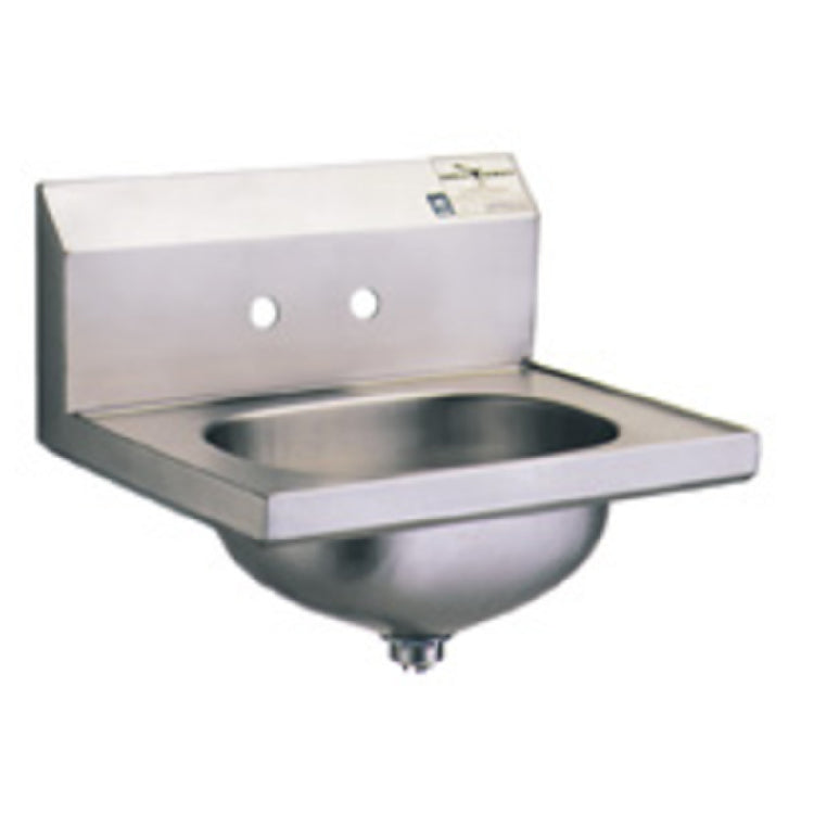 The Eagle HSA-10-1X Hand Sink Wall Mount is expertly crafted for diverse segments across the food service industry, medical facilities, and commercial spaces. Measuring 13-1/2 inches in width, 9-3/4 inches front-to-back, and 6-3/4 inches deep, this sink is compact yet efficient, optimizing space without sacrificing functionality. Constructed from 304 stainless steel, it promises durability and resistance to corrosion, making it suitable for demanding environments. Its deep-drawn seamless design ensures a positive drain, facilitating efficient water flow and minimizing the risk of pooling. The inverted "V" edge adds a layer of splash protection, ensuring the surrounding area remains dry and hygienic. This sink requires a splash-mounted faucet, allowing for customizable configurations to suit specific needs. Complying with NSF standards, the Eagle HSA-10-1X Hand Sink Wall Mount reflects a commitment to public health and safety. This product is an excellent choice where hygiene and space efficiency are paramount, providing a reliable and durable solution for maintaining cleanliness and operational efficiency.