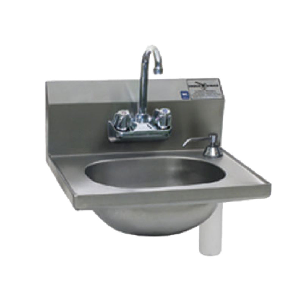 The Eagle HSA-10-F-DS Hand Sink is a precision-engineered wall-mounted unit measuring 13-1/2 inches in width, 9-3/4 inches front-to-back, and 6-3/4 inches deep, making it a compact yet essential fixture for commercial settings requiring strict hygiene standards. Crafted from 304 stainless steel, this hand sink offers superior durability and resistance to corrosion. Its splash mount gooseneck faucet ensures efficient water flow, while the basket drain facilitates quick drainage, preventing water build-up. The deck-mounted soap dispenser adds convenience, ensuring easy access to soap for thorough hand washing. The sink's deep-drawn seamless design contributes to a positive drain, promoting optimal sanitation by preventing water stagnation. The inverted "V" edge further enhances hygiene by minimizing spillage and splash-back. NSF certification underscores its compliance with stringent public health and safety standards, making it suitable for various industries, from food service to healthcare. The Eagle HSA-10-F-DS is engineered for high performance and reliability, catering effectively to the needs of professionals who prioritize hygiene and efficiency in their operational environments.