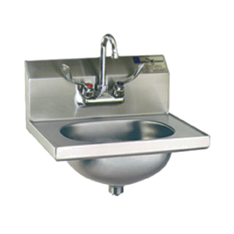 The Eagle HSA-10-FW Hand Sink Wall Mount is a meticulously designed product, measuring 13-1/2 inches in width, 9-3/4 inches front-to-back, and 6-3/4 inches in bowl depth, making it a compact yet highly functional addition to any professional kitchen or food service environment. Crafted from high-grade 304 stainless steel, this hand sink promises durability and resistance to corrosion, ensuring a long-lasting investment. Its splash mounted faucet is equipped with user-friendly wrist handles, facilitating easy and hygienic operation, which is especially beneficial in environments requiring frequent handwashing. The inclusion of a basket drain optimizes water flow and debris management, enhancing operational efficiency. The sink features an inverted "V" edge design, which not only augments its aesthetic appeal but also adds to its structural integrity. Certified by the NSF, the Eagle HSA-10-FW meets rigorous public health and safety standards, reaffirming its suitability for the food service industry. This hand sink is an ideal solution for restaurants, cafes, and other commercial kitchens that prioritize space efficiency without compromising on quality and functionality. Its compact design and robust construction make it a versatile and essential component in maintaining high hygiene standards.