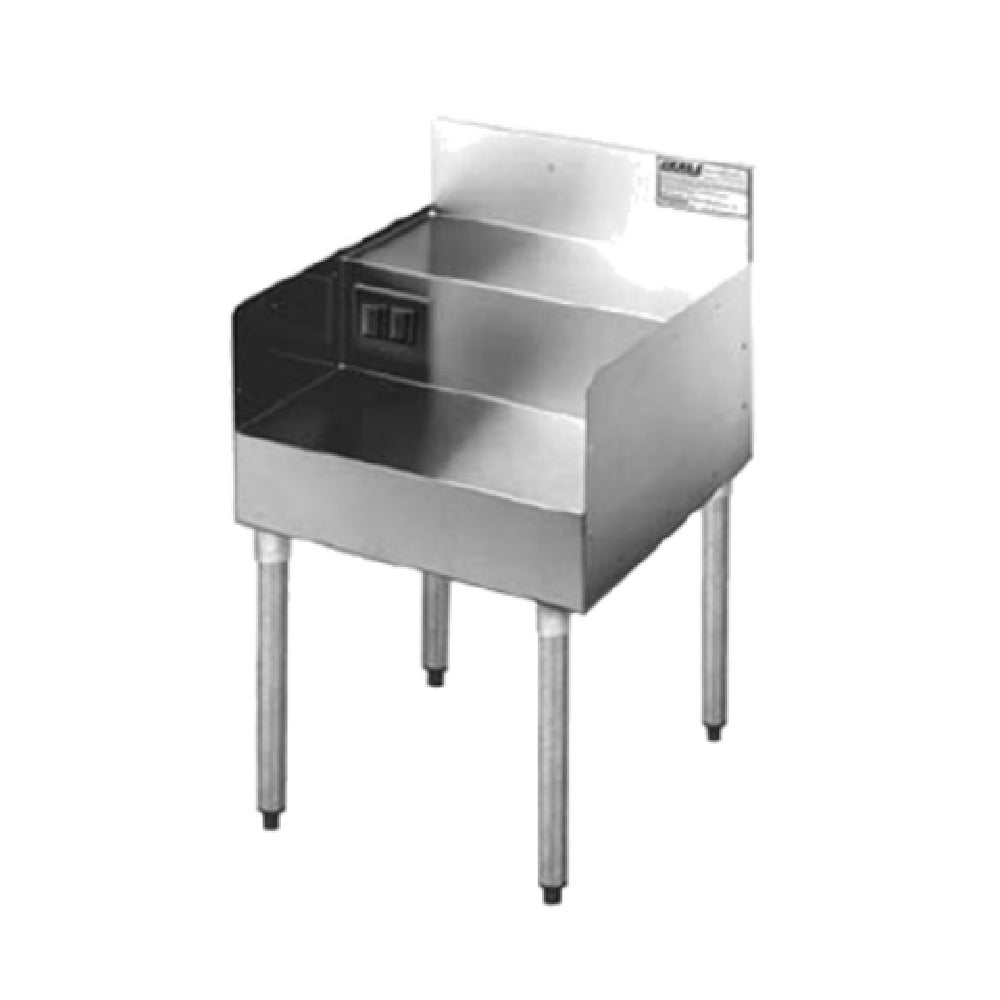 The Eagle MA6-22 2200 Series Underbar Side-To-Side Modular Add-On Unit is a versatile and robust component designed to enhance beverage service areas with precision and durability. Measuring 18 inches in width and 23-1/2 inches in depth, this unit is engineered to fit seamlessly into existing setups, providing additional functionality without occupying excessive space. Constructed with a 4-inch deck and a top made from 18-gauge 304 stainless steel, it promises longevity and resistance to corrosion, ideal for high-use environments. The double blender step-down feature accommodates various blending equipment, optimizing workflow efficiency in bars and restaurants. This unit includes a duplex receptacle with a waterproof cover plate, which is field mount and wire-ready, ensuring safety and convenience in electrical connections. The underbar add-on unit is supported by two knocked down gussets and galvanized legs, each equipped with adjustable bullet feet for stability on uneven surfaces. This modular unit is indispensable for establishments seeking to expand their operational capacity with reliable and space-efficient solutions, catering to the diverse needs of the food service industry.
