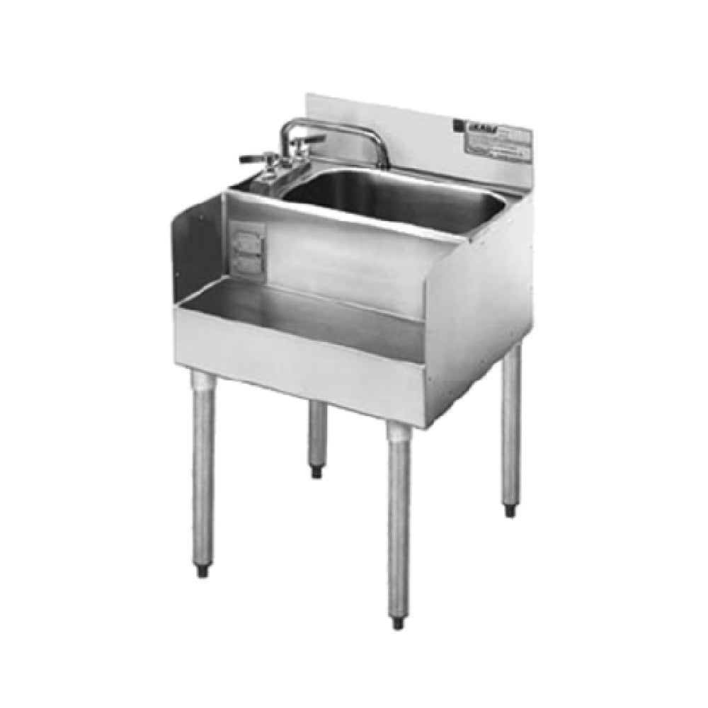 The Eagle MA7-18-3VP 1800 Series Underbar Side-To-Side Modular Add-On Unit 18"W X 19-1/2"D is a highly versatile and durable piece designed for optimal functionality in various commercial settings. This unit includes a blender/dump sink equipped with a faucet and basket drain, addressing the needs of efficient liquid management and waste disposal in hospitality and service industries. Constructed with a top of 18-gauge 304 stainless steel, it ensures longevity and resistance to corrosion, making it suitable for high-demand environments. It features a duplex receptacle with a waterproof cover plate, intended for field mounting and wiring, which provides a practical electrical solution for various kitchen appliances. The unit's structure is supported by two knocked-down gusset/channel and galvanized gusset assemblies with adjustable bullet feet, ensuring stability and customizable height according to workspace requirements. Given a minimum order quantity of three units, the Eagle MA7-18-3VP is tailored for bulk purchase, catering to businesses seeking scalable solutions for their underbar arrangements. The comprehensive design makes it an adaptable addition to bars, restaurants, and catering services, where space optimization and operational efficiency are paramount.