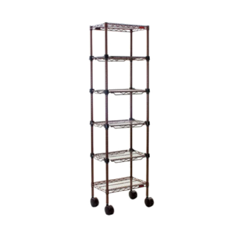 The Eagle MC1422-63-5BL Aisle Merchandising Cart is a versatile utility solution, specifically designed to enhance organizational efficiency across various professional environments. This 5-tier cart measures 22"W x 14"D x 63"H, providing substantial vertical storage while maintaining a compact footprint, making it an ideal choice for retail spaces and warehouses. The cart is equipped with two wire shelves featuring the patented QuadTruss® design on the top and bottom, ensuring superior strength and durability. Additionally, it includes three intermediate Add-A-Shelf® wire shelves, allowing for customizable storage configurations to meet diverse merchandising needs. The cart's robust black epoxy finish offers enhanced resistance to wear and corrosion, extending its lifespan in high-traffic areas. It is supported by 2-3/8" decorative black swivel casters with brakes, facilitating smooth mobility and secure placement. The inclusion of split sleeves further simplifies assembly and adjustments. Certified by the NSF, the Eagle MC1422-63-5BL Aisle Merchandising Cart meets stringent public health standards, making it a reliable asset for industries such as retail, hospitality, and healthcare. Its combination of durable construction, flexible shelving, and ease of movement makes it an excellent choice for businesses seeking organized and adaptable storage solutions.