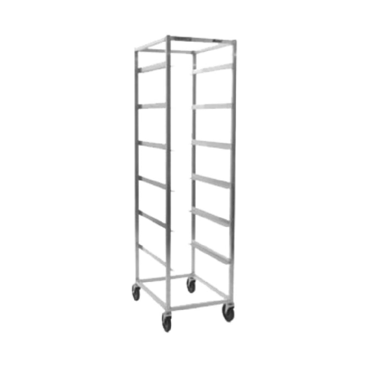 The Eagle OLR-6A Panco® Open Lug Rack is a versatile storage solution measuring 19-1/2" wide, 26-3/4" deep, and 70" high, designed to accommodate up to six lugs. This front-loading rack features an all-welded square tubular aluminum frame, ensuring durability and stability for various industrial applications. Equipped with 5" non-marking swivel stem plated casters with polymer tread, it offers smooth and easy mobility, making it an essential asset for dynamic work environments. Its sturdy construction supports efficient organization and transport, catering to the varied needs of sectors such as food service, hospitality, and logistics. The Eagle OLR-6A Panco® Open Lug Rack is NSF certified, highlighting its compliance with stringent public health and safety standards, making it suitable for use in settings where hygiene is paramount. Its practical design and robust build quality make it a reliable choice for businesses seeking effective storage solutions that enhance operational efficiency. By combining mobility, capacity, and certified safety features, this lug rack stands out as an indispensable tool across multiple industry segments.