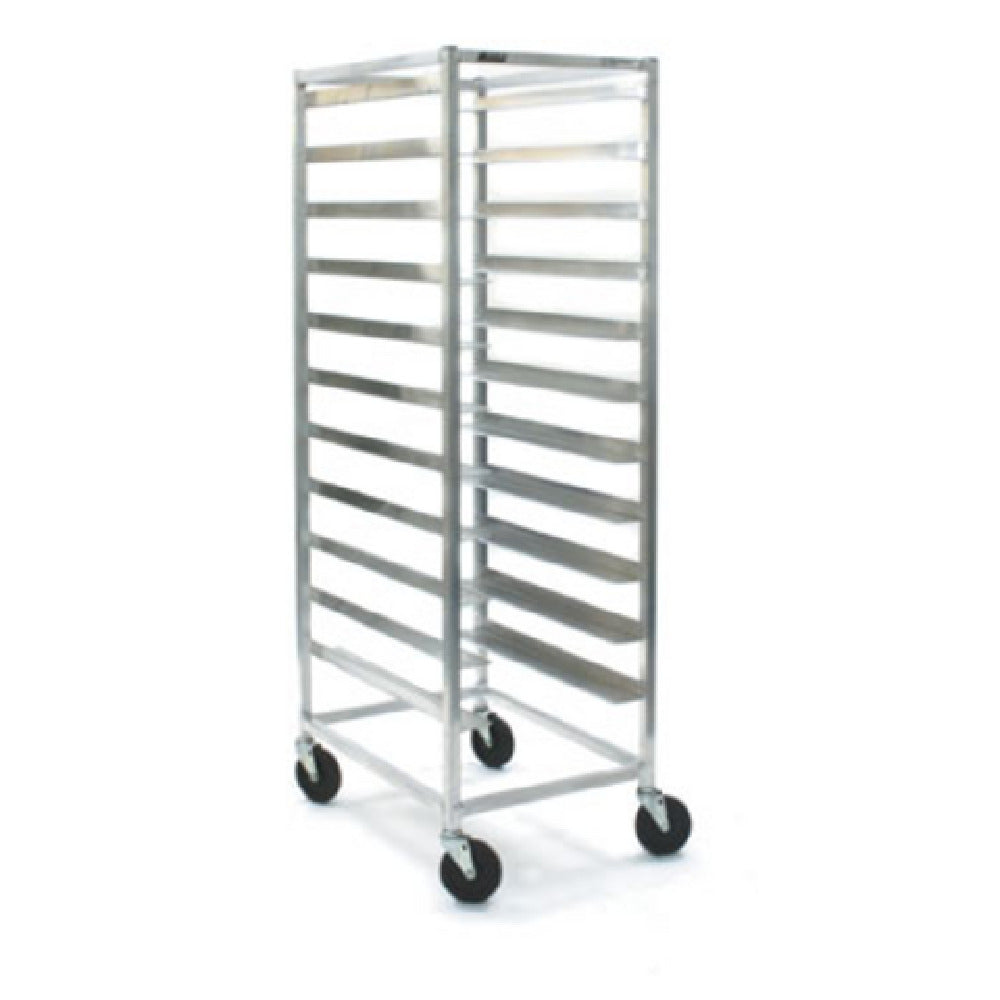 The Eagle OUR-1211-5 Panco® Utility Rack Mobile Full Height is a versatile and practical solution for commercial kitchens and bakeries, offering ample storage for various pan sizes. This utility rack is designed with open sides and features slides that accommodate 14" x 18", 18" x 26", or 12" x 20" pans, making it adaptable to multiple culinary needs. The slides are strategically spaced on 5" centers, allowing for efficient organization and accessibility of stored items. Constructed from welded square tubular aluminum, this rack ensures durability and longevity, even in demanding environments. The front-loading design enhances ease of use, enabling quick and efficient placement and retrieval of pans. Its mobile nature allows for seamless movement within a kitchen or storage area, optimizing space and workflow. The Eagle OUR-1211-5 Panco® Utility Rack is especially valuable for establishments requiring flexible storage solutions, such as catering businesses, restaurants, and industrial kitchens. Its robust construction and thoughtful design make it a reliable choice for professionals seeking to enhance their operational efficiency.