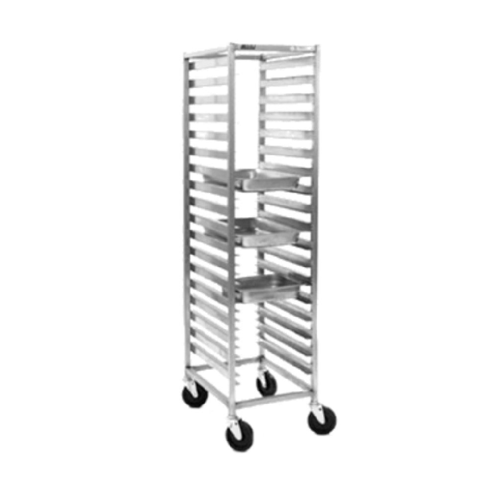 The Eagle OUR-1236-3-SR Panco® Utility Rack Mobile Full Height is a versatile storage solution designed for efficient space utilization and ease of mobility in commercial kitchens and foodservice environments. Featuring a 36-pan capacity, this utility rack accommodates 12" x 20" pans, making it ideal for operations requiring frequent storage and retrieval of large quantities of pans. The rack is constructed with welded square tubular stainless steel, ensuring durability and longevity even in high-demand settings. Its front-loading design and narrow opening allow for easy access and organization, optimizing workflow efficiency. The slides are positioned on 3" centers, providing stable support and maximizing storage versatility. With open sides, this utility rack offers quick visibility and access to stored items, enhancing operational productivity. The mobile design further underlines its practicality, allowing users to effortlessly relocate the rack as needed within a dynamic kitchen environment. This utility rack is a practical choice for commercial kitchens, catering services, and institutional foodservice providers looking to streamline their operations with a reliable and flexible storage solution. The Eagle OUR-1236-3-SR Panco® Utility Rack delivers on quality and functionality, supporting efficient kitchen operations with its thoughtful design and robust construction.