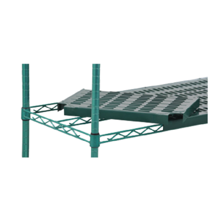 The Eagle QPF-QA1848VG-GS-X QuadPLUS™ Shelf Mat Solid 48"W x 18"D is a meticulously engineered storage solution designed for versatile applications across various industries. This robust shelf mat features a solid green polymer construction equipped with MICROGARD® antimicrobial protection, ensuring superior hygiene and durability. The shelf mat is supported by a wire Quad-Adjust® frame, providing sturdy support and flexibility for adjusting shelf heights to accommodate different storage needs. The Valu-Gard® green epoxy finish on the frame further enhances its resistance to corrosion, extending its lifespan even in demanding environments. Included are four split sleeves, enabling easy and secure installation onto commercial shelving units. With NSF certification, this shelf mat meets stringent public health and safety standards, making it ideal for use in food service, healthcare, and industrial settings where maintaining high standards of cleanliness is crucial. The Eagle QPF-QA1848VG-GS-X is designed to seamlessly integrate into existing storage systems, offering a practical and reliable solution for enhancing organizational efficiency while adhering to safety protocols. Its thoughtful design combines essential features that cater to a wide range of market segments, ensuring adaptability and performance in varied operational contexts.