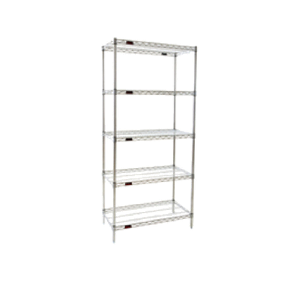 The Eagle S5-86-2442Z Starter Shelving Unit is a precision-engineered, 5-tier storage solution measuring 42"W x 24"D x 86"H, tailored for various industrial needs. Featuring wire shelves with the patented QuadTruss® design, this unit provides superior shelf strength while optimizing airflow and visibility. The shelving unit includes four 86"H posts, ensuring structural stability and allowing it to accommodate substantial loads. Its EAGLEbrite® zinc finish not only offers an aesthetic appeal but also enhances the material's resistance to corrosion, crucial for demanding environments. Designed as a KD (knock-down) unit, it allows for straightforward assembly and disassembly, facilitating transport and reconfiguration in dynamic workspaces. The NSF certification underscores its adherence to stringent public health standards, making it suitable for food service and healthcare sectors where hygiene is paramount. This shelving unit is an ideal choice for businesses seeking reliable and adaptable storage solutions in commercial kitchens, storage facilities, and laboratories. Its robust construction and innovative design make it a valuable asset for industries prioritizing efficiency, durability, and compliance with health and safety regulations.
