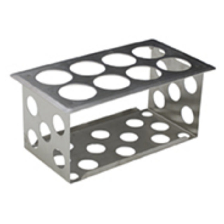 The Eagle SBH-1/3-X Bottle Holder holds (8) bottles and is expertly crafted for optimal organization and efficiency in various food service environments. With dimensions of 12-1/2"W x 7"D x 5-1/2"H, this bottle holder is constructed from high-quality 300 series stainless steel, ensuring durability and long-lasting performance. The holder features 2-7/16" diameter holes, specifically designed to accommodate condiment bottle dispensers, making it a practical solution for kitchens, cafes, or any establishment requiring organized condiment storage. This model is compatible with traditional 1/3 or 1/6 size food pan applications, offering versatility and adaptability across different kitchen setups. The Eagle SBH-1/3-X combines functionality with a sleek design, providing a reliable and efficient way to keep condiment bottles easily accessible and neatly arranged. Whether used in a bustling restaurant or a small catering business, this bottle holder stands out for its robust construction and thoughtful design, catering to the diverse needs of the food service industry.