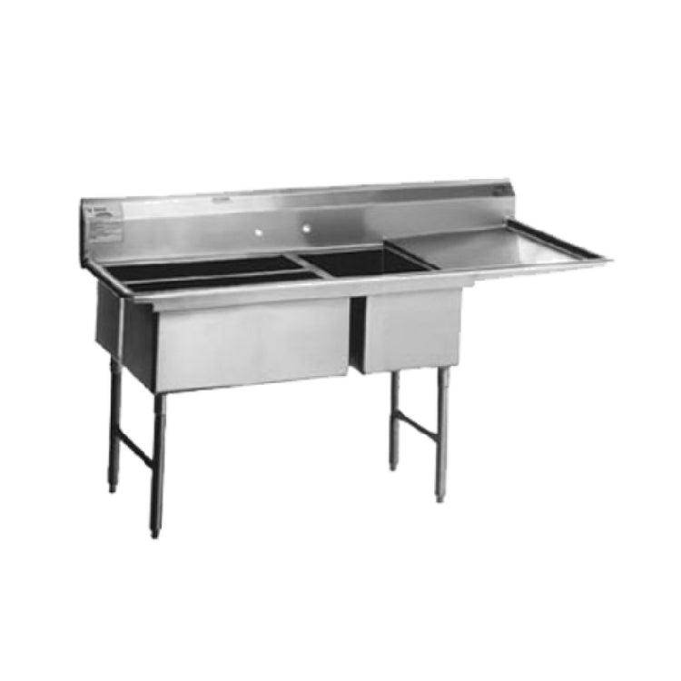 The Eagle SFN3052-3-18R-14/3 Spec-Master® Supermarket Meat Platter Sink Three Compartment is a meticulously engineered unit catering to the unique demands of the food service industry, particularly supermarkets. Constructed from robust 14/304 stainless steel, this sink ensures durability and longevity. It features three compartments: two bowls each measuring 32 inches wide, 14 inches front-to-back, and 14 inches deep, alongside a larger bowl that is 30 inches wide, 20 inches front-to-back, and 14 inches deep, offering ample space for meat platter preparation and cleaning tasks. An 18-inch drainboard on the right provides a convenient area for drying or additional workspace. The 10-inch high backsplash is designed to protect walls from splashes, while the 8-inch OC splash mount faucet holes accommodate various faucet types. Additionally, the sink includes three 3-1/2 inch basket drains for efficient water drainage, and stainless steel legs with side crossrails ensure stability. The adjustable bullet feet allow for height customization to suit different working environments. Certified by NSF, this sink guarantees adherence to safety and quality standards, making it a reliable choice for professionals seeking superior performance and practicality in their kitchen operations.