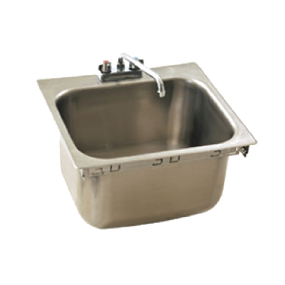 The Eagle SR19-16-13.5-1 Self-Rimming Drop-In Sink One Compartment 20" Wide X 16" Front-to-back X 13-1/2" Deep Bowl is a versatile and essential fixture for various professional settings, including commercial kitchens and laboratory environments. This sink features a single compartment measuring 20 inches wide, 16 inches front-to-back, and 13-1/2 inches deep, providing ample space for washing and handling tasks. It is crafted from 18/304 stainless steel, ensuring durability and resistance to corrosion, which is crucial for rigorous daily use. The inclusion of a basket drain facilitates efficient water management and debris capture, enhancing its functionality. Equipped with a 4-inch on-center deck mount faucet and a 12-inch swing spout (model 300490), this sink allows for flexible water flow control and ease of use, catering to diverse operational requirements. Certified by NSF, the Eagle SR19-16-13.5-1 sink meets industry standards for safety and sanitation, making it a reliable choice for establishments prioritizing hygiene and quality. Its self-rimming design simplifies installation, offering a seamless integration into countertops while providing a polished, professional appearance. This sink is an optimal solution for businesses seeking a robust and efficient water fixture that supports high-efficiency workflows in demanding settings.