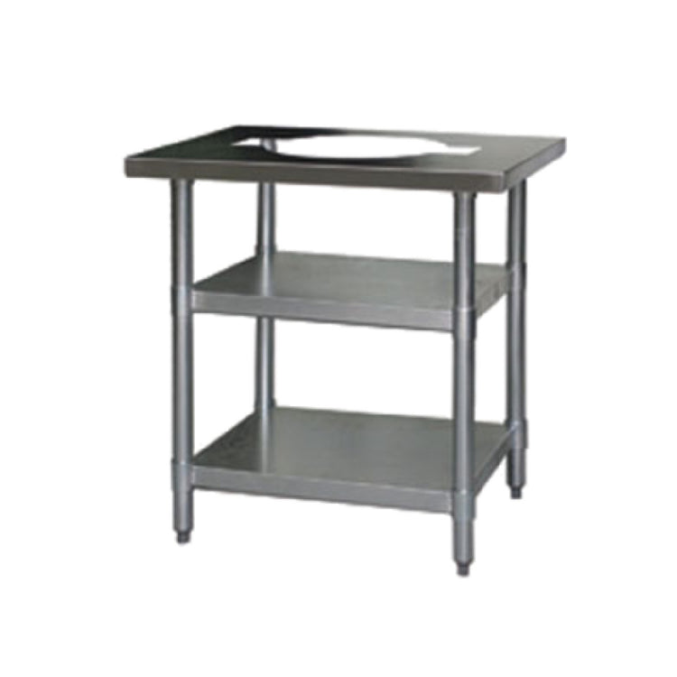 The Eagle T3224RCSB Equipment Stand for Rice Cooker - 24"W x 32"D x 34-1/2"H is a highly functional and tailored solution for professionals in the culinary and food service industry, particularly those focusing on Asian cuisine where rice cooking is prevalent. Featuring a 16/430 stainless steel top with a custom cutout, this stand ensures stability and optimal positioning for rice cookers, enhancing kitchen efficiency. The inclusion of two adjustable stainless steel undershelves provides versatile storage options for additional kitchen equipment or supplies, making it adaptable to varying kitchen layouts and storage needs. Structurally supported by stainless steel legs with adjustable plastic feet, it offers durability and stability on uneven surfaces, beneficial for maintaining a steady kitchen environment. Additionally, the zinc-plated gussets contribute to its robust construction, enhancing the stand’s longevity and reliability under regular use. Certified by NSF, this equipment stand adheres to strict public health and safety standards, making it a trusted choice for commercial kitchens. Its precise dimensions allow for optimal utilization of kitchen space, making the Eagle T3224RCSB an essential piece for enhancing workflow and organization in professional settings requiring high-capacity rice cooking capabilities.