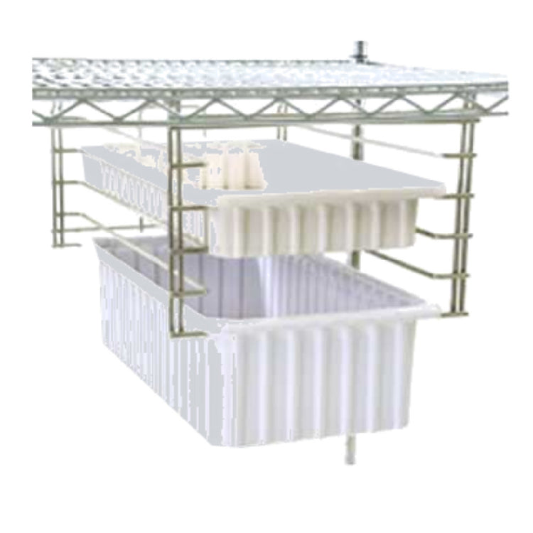 The Eagle TS1421 Slide System is engineered to deliver exceptional utility with its precise dimensions of 14" x 21-5/8" x 10-1/4", making it a perfect fit for a 24" shelf. Designed to support a weight capacity of 35 lbs., this slide system is a robust solution for diverse storage needs. It is particularly suited for adaptable tote boxes, with compatibility for models TB1022-3 and TB1022-6, providing flexibility and versatility for various organizational requirements. This slide system is ideal for industries that require efficient space management, such as catering, retail, or warehousing sectors. Its precise fit and robust construction ensure that it can withstand the rigorous demands of commercial use, making it a reliable choice for businesses aiming to optimize storage efficiency. The Eagle TS1421 Slide System stands out in its category by combining substantial load capacity with adaptable utility, tailored to meet the needs of professional environments that prioritize both efficiency and durability. Its design reflects a commitment to quality and functionality, making it a critical component in any storage solution strategy where maximizing space and maintaining systematic order are paramount.