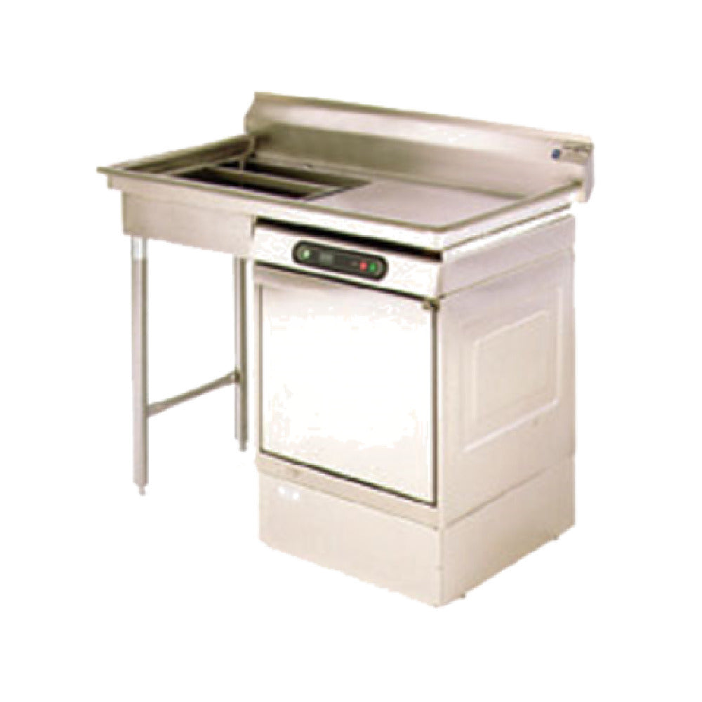 The Eagle UDT-4R-16/4 Soiled Dishtable Undercounter Dishwasher On Right is an exceptional piece of kitchen equipment designed for efficient dishwashing. This unit measures 48 inches wide, 27-1/2 inches deep, and 43-1/2 inches high overall, providing ample workspace and functionality in compact kitchen settings. The top is constructed from 16-gauge 430 stainless steel, ensuring durability and resistance to corrosion. This model features a 20-inch by 20-inch by 5-inch pre-rinse sink, which includes a basket drain with a removable crumb cup, adding convenience and ease of cleaning. The 8-inch high backsplash protects surrounding areas from splashes. Designed with a single deck mount faucet hole for pre-rinse, it facilitates seamless integration with your existing plumbing setup. Its raised rolled rims on the front and sides enhance safety and prevent spills. The dishtable is compatible with undercounter dishwashers up to 24 inches front-to-back, optimizing space utilization. Galvanized legs and crossrails offer sturdy support, while the adjustable plastic bullet feet ensure stability on uneven surfaces. Certified by NSF, this dishtable meets strict public health and safety standards, making it a reliable choice for food service environments that demand high performance and hygiene.