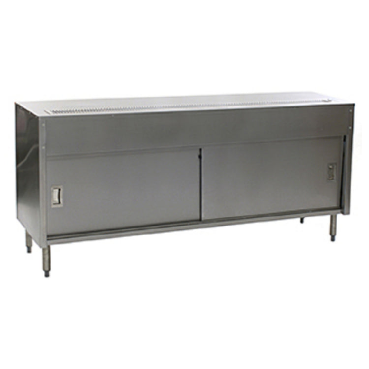 The Eagle US5CB Spec-Master® Urn Stand 79"W 16 Gauge Stainless Steel Top is a meticulously engineered piece of equipment designed for durability and convenience in high-demand environments. Measuring 79 inches in width, this urn stand features a robust 16-gauge stainless steel top, ensuring a durable surface that can withstand the rigors of daily use. The unit includes a 4-3/4 inch trough sloped to a 1-inch drain, providing efficient liquid disposal. It also boasts a full-length removable louvered grate, which facilitates easy cleaning and maintenance. The 20/430 stainless steel enclosed base is equipped with sliding doors, offering secure and accessible storage space beneath the work surface. Supporting the unit are 1-5/8 inch O.D. stainless steel tubular legs with adjustable plastic bullet feet, ensuring stability on uneven surfaces. This product is NSF certified, reaffirming its compliance with public health and safety standards. Ideal for commercial kitchens, catering operations, and hospitality settings, the Eagle US5CB Spec-Master® Urn Stand is crafted to meet the needs of professionals seeking reliable and practical equipment for their beverage service areas.