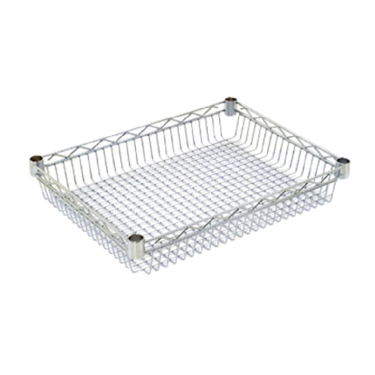 The Eagle WBS1836C Basket Shelf is a precisely engineered wire storage solution with dimensions of 36 inches in width and 18 inches in depth, tailored to meet diverse industry requirements. This basket shelf boasts a 4-1/4 inch depth, providing an ample storage area for various applications, from commercial kitchens to laboratory environments. Its chrome finish not only enhances aesthetic appeal but also contributes to durability and corrosion resistance, essential for maintaining hygiene standards in demanding settings. The Eagle WBS1836C is NSF certified, ensuring compliance with rigorous public health and safety protocols, a critical aspect for food service and healthcare industries. This wire basket shelf can efficiently accommodate various organizational needs, optimizing space utilization in versatile settings. Its robust construction ensures long-lasting performance, making it a reliable asset for industries that prioritize both functionality and quality. The Eagle WBS1836C Basket Shelf is particularly valuable for environments that require stringent hygiene control and efficient storage solutions, such as restaurants, laboratories, and medical facilities. Its design facilitates easy integration into existing storage systems, enhancing operational efficiency and contributing to a streamlined workflow.