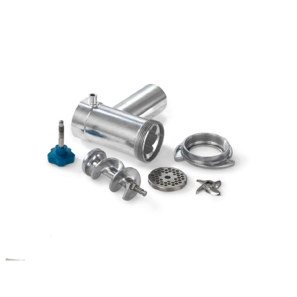 The Edlund EDVG-12A Meat Grinder Electric Bench-type is a versatile and efficient tool designed for commercial and industrial kitchen environments. This electric bench-type grinder is equipped with a forward/reverse switch, enhancing its operational flexibility and preventing jams during heavy-duty meat processing tasks. It features a built-in slide-out storage drawer, offering convenient access and storage for essential accessories. The grinder is fitted with a durable stainless steel feed pan and comes with a plastic pusher, ensuring safe and efficient meat processing. Powered by a ventilated motor, it maintains optimal performance even during extended use. The hermetically sealed gearbox with oil bath gears guarantees smooth operation and longevity, reducing the need for frequent maintenance. The EDVG-12A's anodized aluminum housing provides robust protection against corrosion, ensuring the grinder's durability and reliability in demanding kitchen settings. Operating at 115v/60/1-ph, this grinder is compliant with cETLus and ETL-Sanitation standards, underscoring its adherence to safety and sanitation requirements. This grinder is an ideal choice for butchers, delis, and food service establishments seeking a reliable and efficient meat processing solution. Its combination of practical features and compliance with industry standards makes it a valuable asset for any professional kitchen.