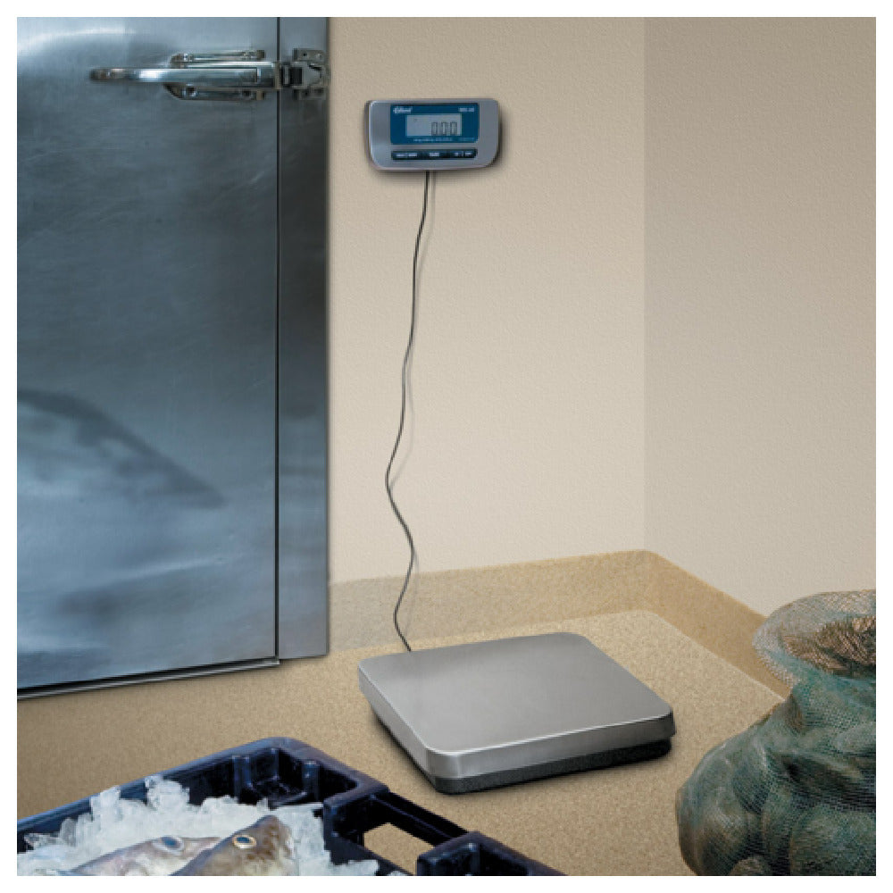 The Edlund ERS-150 Scale Digital Receiving 150 Lbs/75kg X .05lbs/.02 Kg is a high-precision digital scale designed for efficient and accurate weighing tasks, catering to diverse needs within various industries. With a maximum weight capacity of 150 lbs (75 kg) and a precision of .05 lbs (.02 kg), this scale ensures precise measurements for both light and heavy loads. The robust 12" x 12-1/2" stainless steel platform provides a durable and stable surface, suitable for various weighing applications. Featuring a clear LCD display, users can easily read measurements in different lighting conditions. The scale incorporates advanced 4 load cell technology, enhancing its accuracy and reliability. Powered by 6 "AA" batteries or a dual-voltage 12-volt power supply (included), the ERS-150 offers flexibility and convenience for on-the-go or stationary use. Additionally, the product comes with a wall mounting bracket, allowing for versatile placement options to suit workspace requirements. Certified by CSA, UL, CE, and NSF, this digital scale meets rigorous standards for safety, performance, and sanitation, making it an ideal choice for food service, industrial, and commercial environments where precision and reliability are paramount.