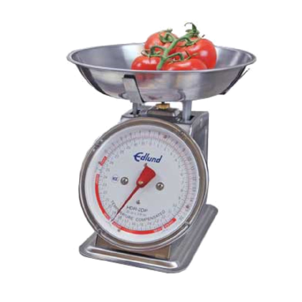 The Edlund HDR-2DP-B Scale Portion Dial Type is a versatile top-loading counter model designed for precision and durability in various professional food service environments. Featuring a sloped face and a 30-degree angle rotating dial, this scale offers an over/under feature to ensure accurate portion control. The scale measures in increments of 32 ounces with a 1/8 ounce graduation, providing precise measurements crucial for tasks requiring exactness, such as baking or ingredient preparation. Its 11-3/4-inch diameter stainless steel bowl adds to its durability and ease of cleaning, while the air dashpot technology ensures smooth operation and enhances measurement accuracy. Furthermore, the temperature-compensated mechanism allows the scale to maintain accuracy despite environmental temperature changes, making it reliable in diverse kitchen conditions. Constructed with heavy-duty stainless steel, this scale is built to withstand rigorous use in high-volume settings. The Edlund HDR-2DP-B is NSF certified, ensuring it meets strict public health and safety standards, making it an ideal choice for restaurants, bakeries, and other food service operations that require dependable and precise weighing solutions. Its robust construction and advanced features underscore its unique value proposition as a reliable and efficient tool for professional kitchens striving for excellence in portion control.