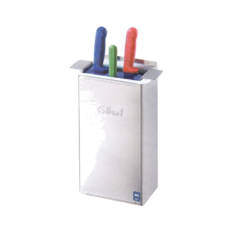 The Edlund KSR-5000 Knife Sanitizing System is a cutting-edge solution designed to maintain the highest standards of hygiene in food service environments. This system employs liquid sanitizing technology, providing an efficient and thorough cleaning process for knives, which is critical for maintaining food safety. The innovative design includes a removable insert and tank, facilitating easy cleaning and maintenance, which is essential for busy kitchens. Encased in durable stainless steel, the KSR-5000 ensures longevity and resistance to wear, which is vital for commercial kitchens operating under stringent conditions. Proudly made in the USA, this system exemplifies quality craftsmanship and reliability. The Edlund KSR-5000 is NSF certified, ensuring compliance with the highest public health and safety standards, making it an ideal choice for establishments where sanitation is paramount, such as restaurants, catering services, and institutional kitchens. This system not only enhances safety by preventing cross-contamination but also supports operational efficiency with its user-friendly design. By integrating the Edlund KSR-5000 Knife Sanitizing System into their workflow, culinary professionals in diverse sectors can ensure optimal hygiene and safety, reinforcing the quality of their culinary offerings.