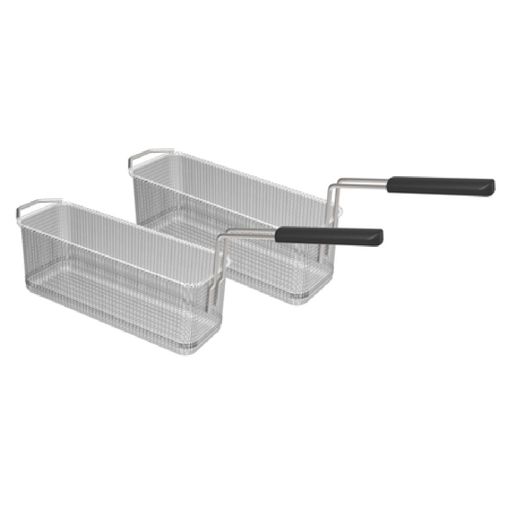 The Electrolux 206314 (LV206314) Two Double Portion Baskets for Automatic Programmable Pasta Cooker are designed to enhance the efficiency and versatility of commercial kitchens using pasta cookers. These baskets are specifically crafted to be compatible with an automatic programmable pasta cooker, providing seamless integration with built-in lifting systems for streamlined operations. The Electrolux 206314 baskets are engineered to accommodate two double portion servings, making them ideal for high-volume environments where consistent portioning is crucial. These baskets also require support model 206362 when not utilized with the lifting system, ensuring stability and functionality. The thoughtful design of these baskets makes them a valuable addition for restaurants, catering services, and institutional kitchens seeking to optimize pasta cooking processes. By combining robust construction with compatibility and ease of use, the Electrolux 206314 baskets deliver a reliable solution for enhancing pasta preparation efficiency, aligning with the diverse needs of different market segments within the food service industry.