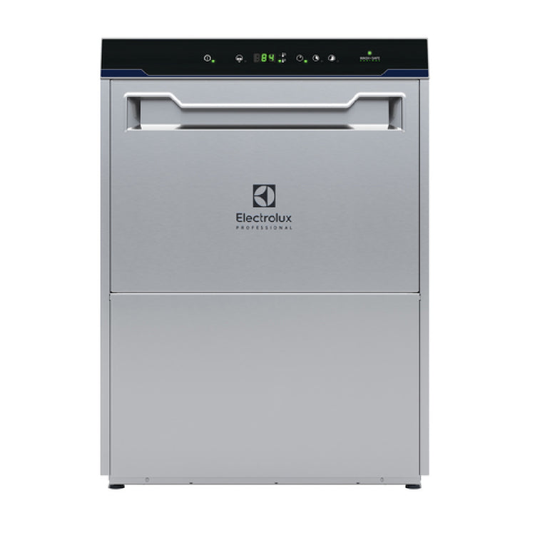 The Electrolux 502716 (LV502716) Dishwasher is an undercounter unit designed for high-temperature sanitizing, featuring a built-in electric booster to ensure optimal cleaning performance. With a capacity to handle 30 racks per hour, this dishwasher is equipped with electronic controls, allowing for cycle durations of 120, 180, or 240 seconds. The unit incorporates a soft start feature and wash safe control, enhancing its operational efficiency. It boasts an automatic self-cleaning cycle and is fitted with detergent and rinse aid pumps to maintain hygiene standards. Constructed from 304 stainless steel, the dishwasher is built for durability and longevity. Its adjustable feet allow for easy installation in various kitchen environments. The dishwasher is powered by a 1 HP motor and comes with a flexible fill hose, a drain hose, and an electric cable. Included with the unit are two cutlery containers (864242), a plate basket (867002), and a cup basket (867007). Operating at 208v/1/60, it can be field converted to 208/3/60, offering flexibility in different operational settings. The Electrolux 502716 is certified by cETLus, ETL-Sanitation, and is ENERGY STAR rated, making it a reliable and energy-efficient choice for commercial kitchens.