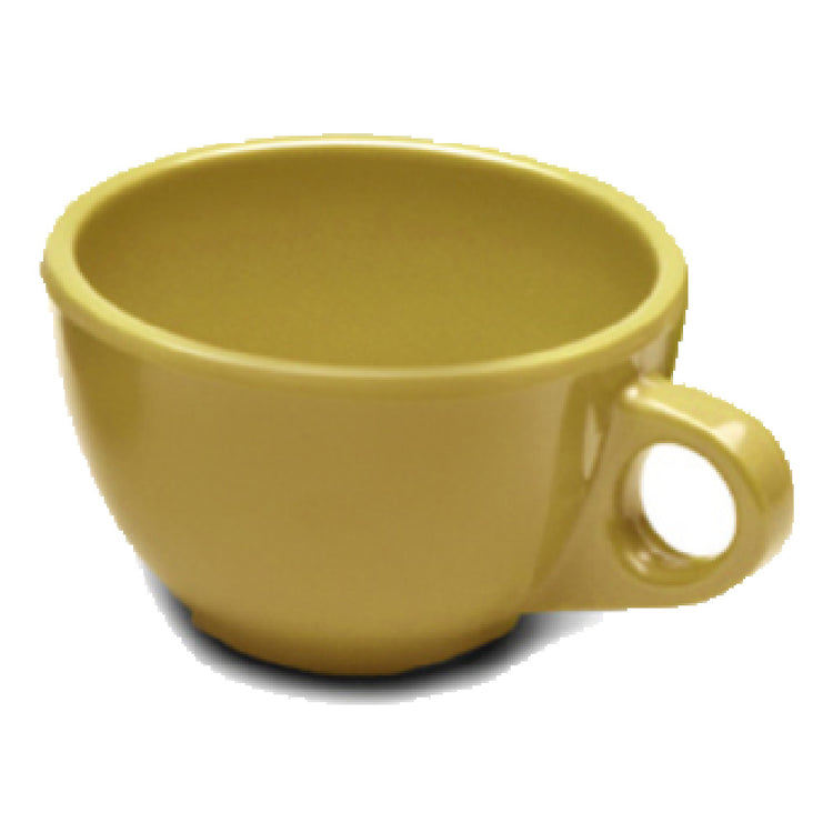 The Elite Global Solutions DMC-OO Coffee Cup 8 Oz. 3-3/4" Dia. X 2-1/4"H is a durable and stylish coffee cup designed for various market segments, including hospitality, catering, and home use. This round coffee cup is constructed from high-quality melamine, recognized for its break, chip, stain, and scratch-resistant properties, ensuring longevity in any setting. With a capacity of 8 ounces, it perfectly accommodates a standard serving of coffee or tea. Its dimensions - 3-3/4 inches in diameter and 2-1/4 inches in height - make it a comfortable fit for most cup holders and storage spaces. The cup is also BPA free, reflecting a commitment to health and safety. It features an 'Urban Naturals' design in an olive oil hue, adding a touch of elegance to any table setting. The product is dishwasher safe, allowing for easy cleaning and maintenance. Additionally, the Elite Global Solutions DMC-OO Coffee Cup is NSF certified, highlighting its compliance with rigorous public health standards. Sold in cases of six, this coffee cup set is ideal for bulk purchase by businesses looking to enhance their beverage service with reliable and aesthetically pleasing drinkware.