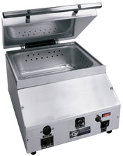 The EmberGlo ES5CT18-5400752 Steamer is a highly efficient countertop unit built for diverse culinary settings, delivering precision and reliability with its unique features. With a direct water hookup, this steamer ensures continuous use without the need for manual refilling, making it ideal for high-demand environments. Its push-button operation streamlines user interaction, offering a simple and efficient method for steam cooking. The unit accommodates one 4-inch deep half-size pan, allowing for versatile cooking options. This steamer includes a 30-minute timer and a top opening hinged lid, enhancing ease of use and operational efficiency. The quick recovery time of the EmberGlo ES5CT18-5400752 Steamer ensures minimal downtime between cycles, boosting productivity in busy kitchens. Constructed from stainless steel, this appliance guarantees durability and longevity, withstanding the rigors of daily use. It operates at 1.8kW, 120v/60/1ph, and 15.0 amps, making it compatible with standard electrical setups. Certified by NSF and cULus, this steamer meets stringent safety and quality standards, providing peace of mind to its users. The inclusion of a pan offers added convenience, making this steamer an all-encompassing solution for professional chefs and foodservice operations seeking reliability and efficiency.