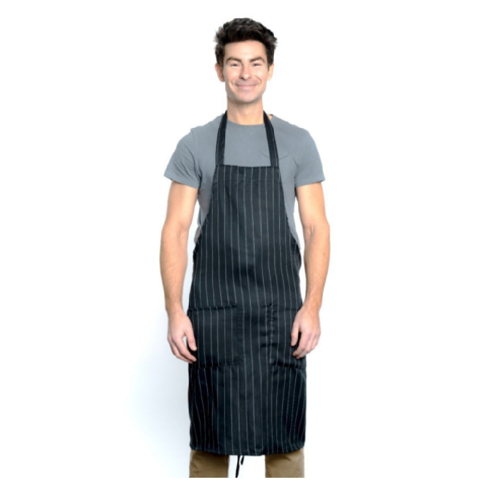 Empura, 167601BACPIN, Bib Apron, 34" x 30", (2) front pockets, 80/20 poly-cotton blend, machine washable, pin stripe, Chef Approved