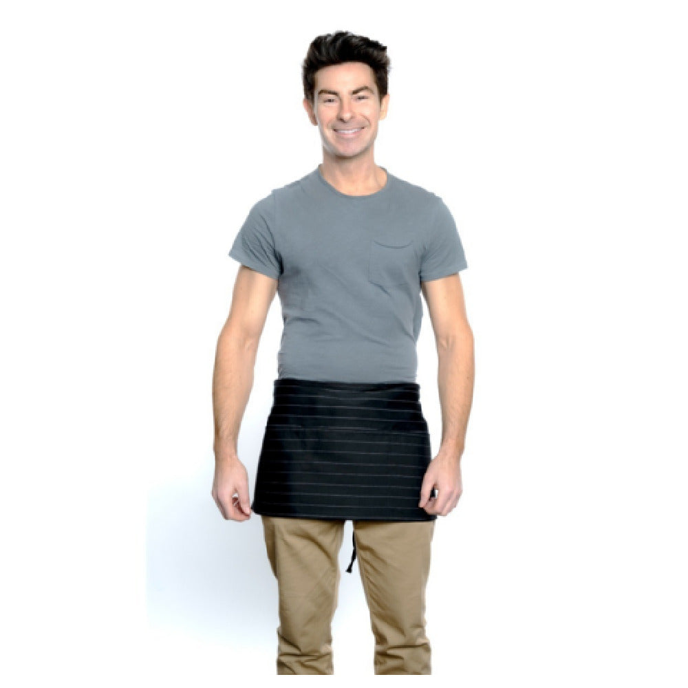 Empura, 167605WAFHPIN, Waist apron, 12" x 24", (3) front pockets, 65/35 poly-cotton blend, machine washable, pin stripe, Chef Approved
