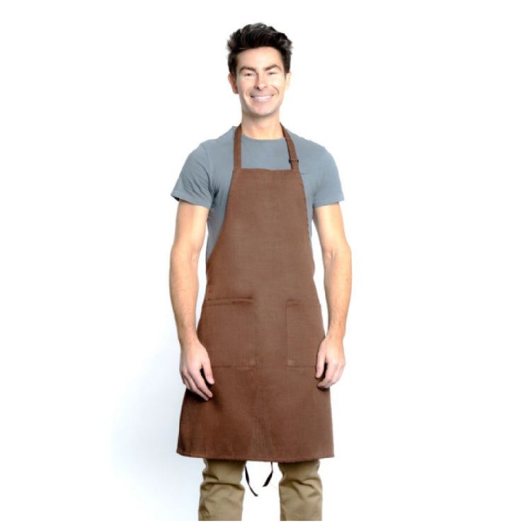 Empura, 167BAADJBR, Bib Apron, 32" x 28", (2) front pockets, 80/20 poly-cotton blend, Adjustable Neck, machine washable, brown, Chef Approved