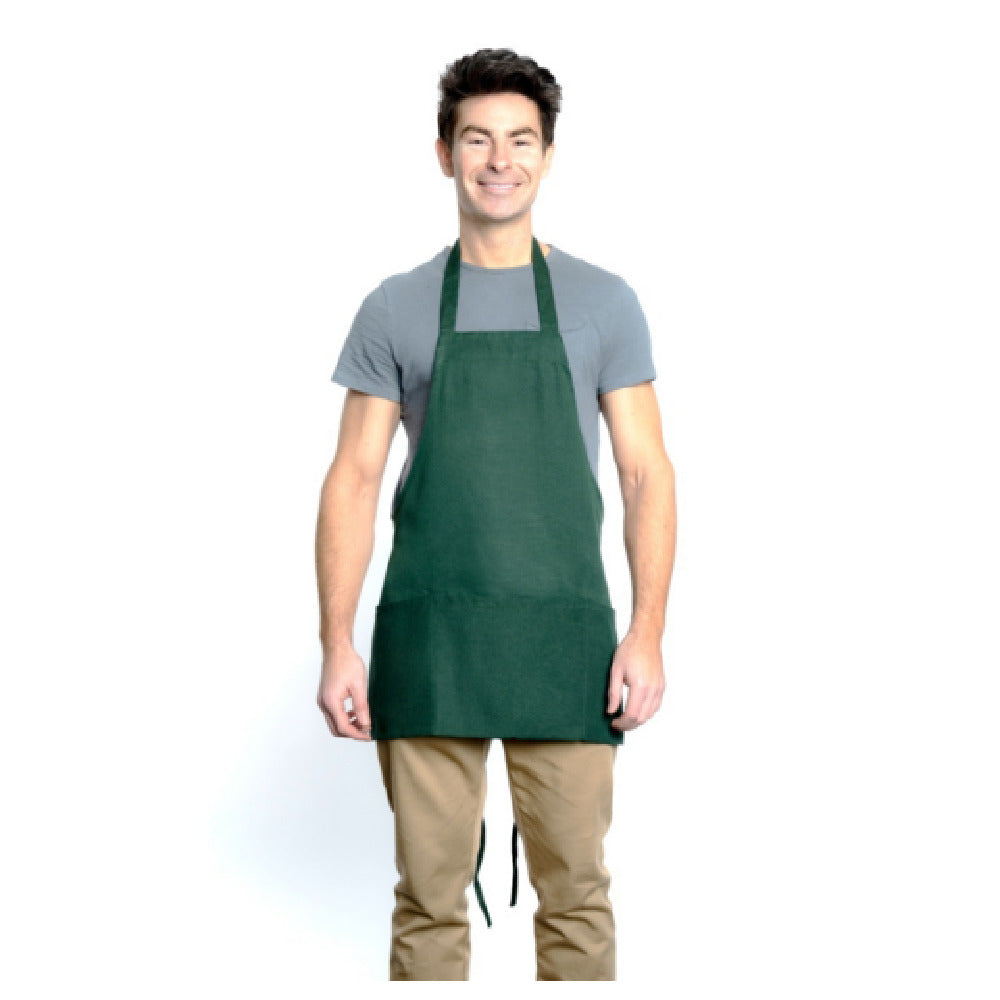 Empura, 167BAFHHG, Bib Apron, half length, 25" x 28", (2) front pockets, 65/35 poly-cotton blend, machine washable, hunter green, Chef Approved