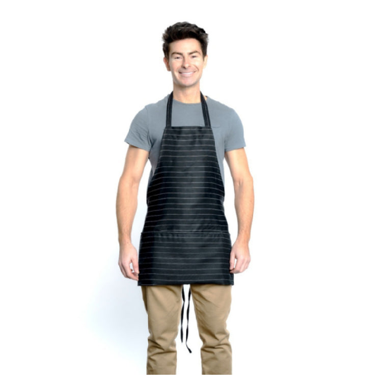 Empura, 167BAFHPIN, Bib Apron, half length, 25" x 28", (2) front pockets, 65/35 poly-cotton blend, machine washable, pin stripe, Chef Approved
