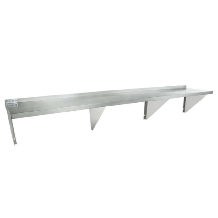 Empura, 1896WS16G, Wall Mount Storage Shelf, 96"W x 18"D x 15.75"H, heavy duty 16 gauge 430 stainless steel shelf and brackets, three brackets, NSF, Empura Stainless