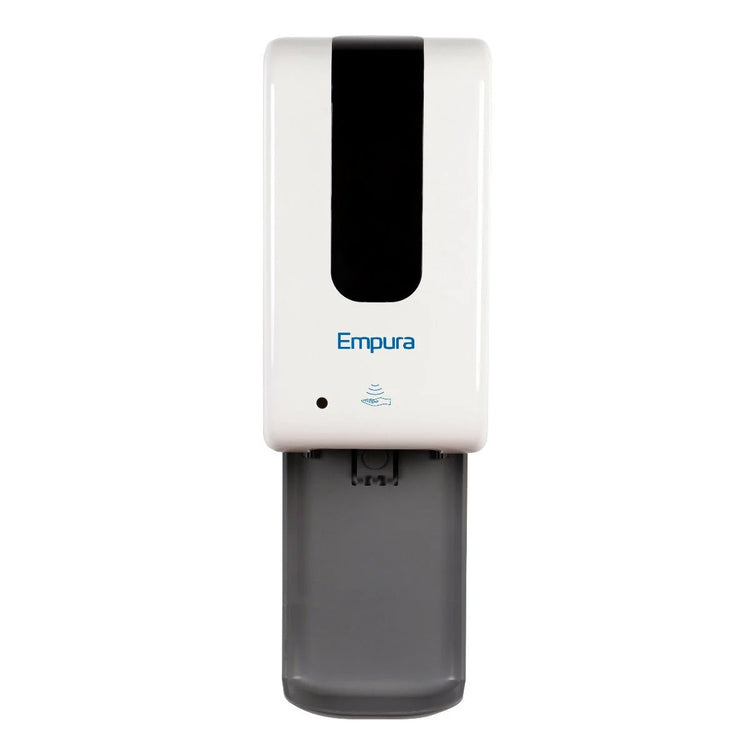 Empura, 430-L-WHITE, Gel Sanitizer Station Wall Mount, 6"W x 4.48"D x 11.1"H, 1,200 ml capacity with drip tray, durable construction, easy installation, suitable for various environments, compatible with most gel sanitizers, includes a convenient drip tray for cleanliness, Empura Equipment