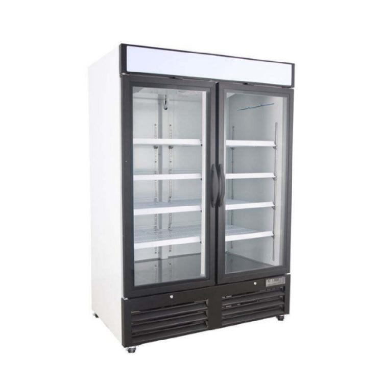 Empura, E-EGM-48FW, Freezer Merchandiser, 54"W x 31.9"D x 81.5"H, 43.8 cu. ft. capacity, (2) swing glass doors, (8) shelves, 2.5" caster, white exterior sides and interior, 0-10 F temperature range, 1 1/4 HP bottom compressor, self-closing door, low-e triple pane glass door, automatic electric defrost, 3,650 BTU (LBP), NEMA-5-15P power cord, 9 amps, 115v/60Hz/1ph, ETL, ETL Sanitation, Tested and conforms to NSF-7 Standards, Empura Refrigeration