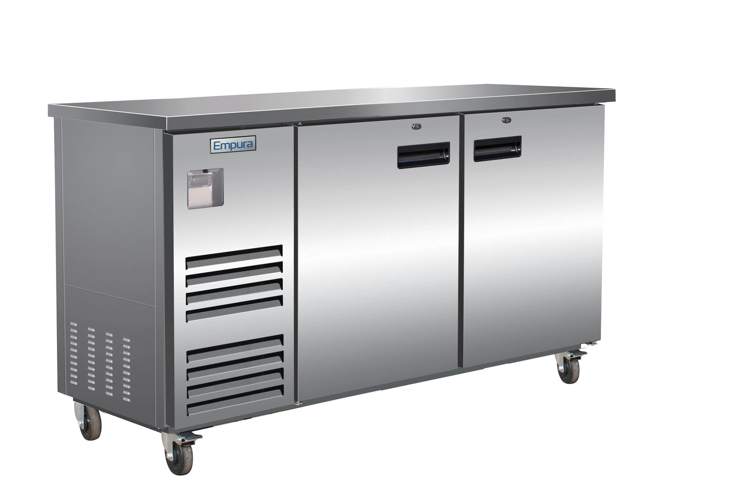 Empura, E-KBB70-2-27-S, Back Bar Cooler, 2 swing solid doors, 69"W x 27 5/8"D x 42 1/2"H, 33-41 F temperature, 115v/60hz/1ph, NEMA-5-15P power cord, HC refrigerant, CFC free refrigerant and foam, Electronic thermostat and digital LED temperature display for accurate control and easy reading, Self-closing door, Magnetic gasket can be replaced without any tools, Stainless steel top, Stainless steel interior and exterior, ETL, ETL Sanitation, Tested and conforms to NSF-7 Standards, Empura Refrigeration